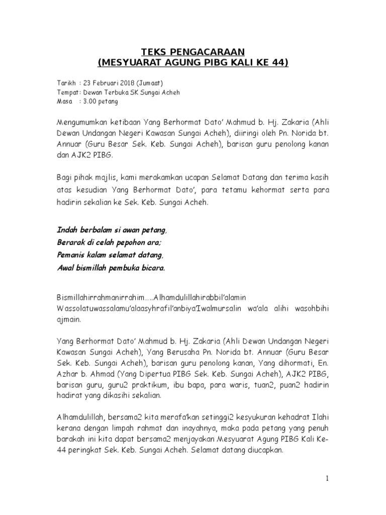 Teks Ucapan Mesyuarat Agung Pibg - Teks Ucapan Guru Besar Sempena Majlis Dengan Pibg - We did not find results for:. Check spelling or type a new query. We did not find results for: Maybe you would like to learn more about one of these? Teks ucapan mesyuarat agung pibg.